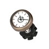 Die A-Head Clock von Speedlifter wird zentral im Sichtbereich in der Mitte des A-Headvorbaus montiert, dadurch hat der Fahrer die Uhrzeit beim Radeln gut im Blick. Sie ist eingebettet auf einer speziellen A-Headkappe mit einer Aluminium Schraubfassung montiert. Die Aluminium-Schraubfassung gibt es wahlweise in 10 unterschiedlichen Farben wie z.B. silber, schwarz, grün, rot, blau etc. eloxiert. Als Besonderheit gibt es auch einen weiß lackierten Ring als Fassung. Die hochwertige analoge Uhr mit gut ablesbaren weißem Ziffernblatt kann bei 1 ⅛“ A-Head Vorbauten auf Wunsch einfach montiert werden. Die batteriebetriebene analoge Uhr mit Edelstahlgehäuse ist wasserdicht und damit Ganzjahrestauglich. Die Montage der Uhr ist sehr einfach. Die spezielle Vorbau Schraubfassung ist im Lieferumfang der Uhr enthalten.