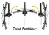Der Speedlifter Twist ist ein Lenkerhöhenverstellsystem mit spezieller Drehfunktion der Lenkereinheit für Fahrräder mit A-Head-Steuersatz. Basierend auf der bewährten Höhenverstellung des Speedlifter Classic mit Schnellspannhebel, Verdrehschutz und Auszugstop des Schaftrohres ermöglicht der Twist zusätzlich eine einfache, sichere und schnelle, werkzeuglose Verdrehung der Lenkereinheit um 90° wahlweise nach rechts oder links!