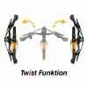 · Mit werkzeugfreier Verdreh-Funktion / Twist ± 90° und Lenker-Höhenverstellung