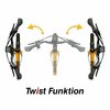 · Mit werkzeugfreier Verdreh-Funktion / Twist ± 90° und Lenker-Höhenverstellung