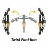 · Mit werkzeugfreier Verdreh-Funktion / Twist ± 90° und Lenker-Höhenverstellung