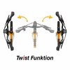 · Mit werkzeugfreier Verdreh-Funktion / Twist ± 90° und Lenker-Höhenverstellung