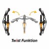· Mit werkzeugfreier Verdreh-Funktion / Twist ± 90° und Lenker-Höhenverstellung