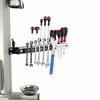 Der mit zwei Nutensteinen in der Längsnut der Hubsäule des e-Bikelifters montierte Werkzeughalter GR 10 / M bietet 10 Steckplätze, beispielsweise für Schraubenzieher, Inbus oder Torx Schlüssel. Weitere Werkzeuge können einfach an der Magnetleiste befestigt werden.